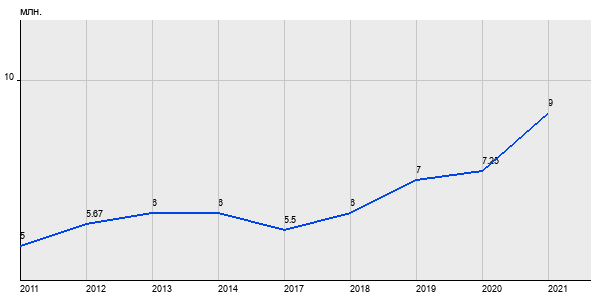 5 млн. руб, а в 2021 году - 9 млн. руб. Таким образом, средняя стоимость однокомнатных квартир в районе "Люблино" за