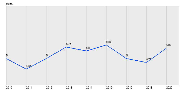 5 млн. руб, а в 2020 году - 5.67 млн. руб. Таким образом, средняя стоимость однокомнатных квартир в районе "Отрадное" за
