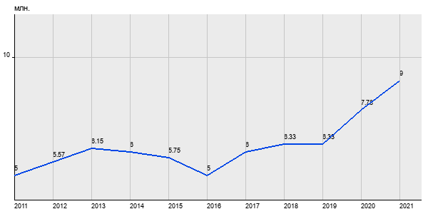 5 млн. руб, а в 2021 году - 9 млн. руб. Таким образом, средняя стоимость двухкомнатных квартир в районе "Перово" за