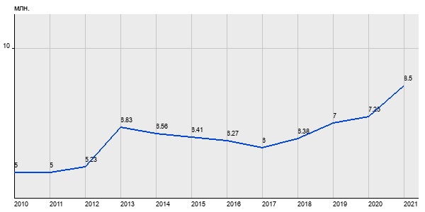 5 млн. руб, а в 2021 году - 8.5 млн. руб. Таким образом, средняя стоимость двухкомнатных квартир в районе "Новогиреево" за
