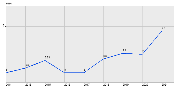5 млн. руб, а в 2021 году - 9.5 млн. руб. Таким образом, средняя стоимость двухкомнатных квартир в районе "Кузьминки" за