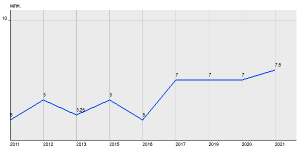 5 млн. руб, а в 2021 году - 7.5 млн. руб. Таким образом, средняя стоимость двухкомнатных квартир в районе "Кузьминки" за