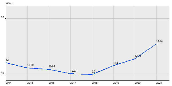 12 млн. руб, а в 2021 году - 15.43 млн. руб. Таким образом, средняя стоимость двухкомнатных квартир в районе "Северное Бутово" за