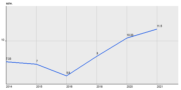 7.33 млн. руб, а в 2021 году - 11.5 млн. руб. Таким образом, средняя стоимость двухкомнатных квартир в районе "Хорошёво-Мнёвники" за