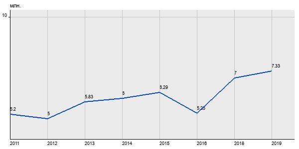 5.2 млн. руб, а в 2019 году - 7.33 млн. руб. Таким образом, средняя стоимость двухкомнатных квартир в районе "Выхино-Жулебино" за