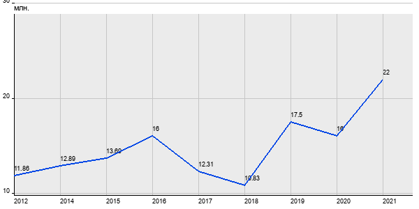 11.86 млн. руб, а в 2021 году - 22 млн. руб. Таким образом, средняя стоимость двухкомнатных квартир в районе "Басманный" за
