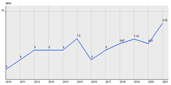 4 млн. руб, а в 2021 году - 8.75 млн. руб. Таким образом, средняя стоимость однокомнатных квартир в районе "Ховрино" за