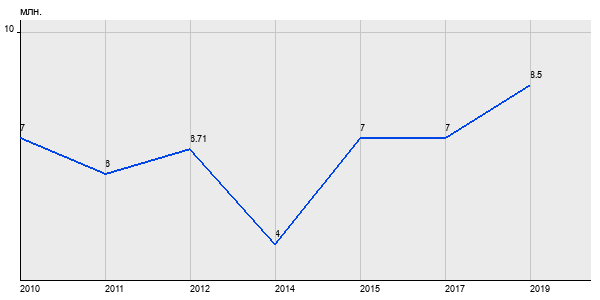 7 млн. руб, а в 2019 году - 8.5 млн. руб. Таким образом, средняя стоимость двухкомнатных квартир в районе "Солнцево" за