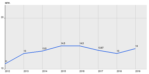 11 млн. руб, а в 2019 году - 14 млн. руб. Таким образом, средняя стоимость трёхкомнатных квартир в районе "Южное Медведково" за