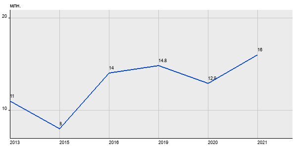 11 млн. руб, а в 2021 году - 16 млн. руб. Таким образом, средняя стоимость трёхкомнатных квартир в районе "Лефортово" за