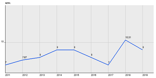7 млн. руб, а в 2019 году - 9 млн. руб. Таким образом, средняя стоимость двухкомнатных квартир в районе "Южное Медведково" за