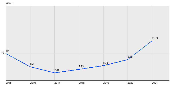 10 млн. руб, а в 2021 году - 11.75 млн. руб. Таким образом, средняя стоимость трёхкомнатных квартир в районе "Марьино" за