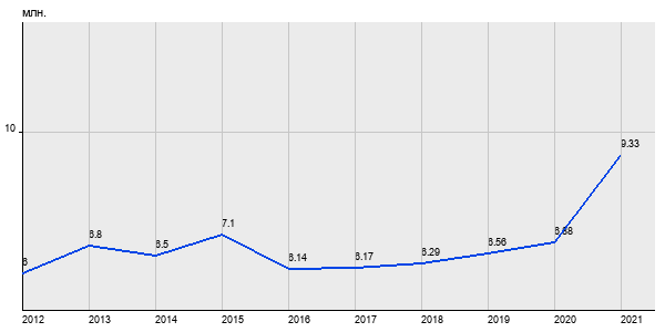 6 млн. руб, а в 2021 году - 9.33 млн. руб. Таким образом, средняя стоимость двухкомнатных квартир в районе "" за