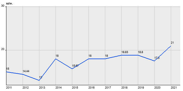 15 млн. руб, а в 2021 году - 21 млн. руб. Таким образом, средняя стоимость трёхкомнатных квартир в районе "" за
