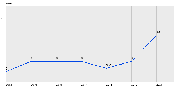5 млн. руб, а в 2021 году - 8.5 млн. руб. Таким образом, средняя стоимость двухкомнатных квартир в районе "Кунцево" за
