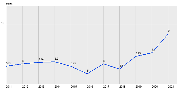 5.75 млн. руб, а в 2021 году - 9 млн. руб. Таким образом, средняя стоимость двухкомнатных квартир в районе "Вешняки" за