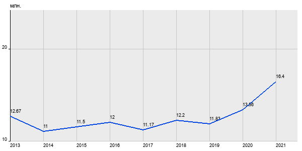 12.67 млн. руб, а в 2021 году - 16.4 млн. руб. Таким образом, средняя стоимость трёхкомнатных квартир в районе "Можайский" за