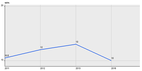 10.5 млн. руб, а в 2016 году - 10 млн. руб. Таким образом, средняя стоимость однокомнатных квартир в районе "" за