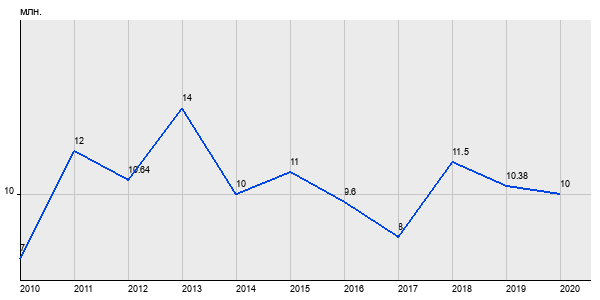 7 млн. руб, а в 2020 году - 10 млн. руб. Таким образом, средняя стоимость двухкомнатных квартир в районе "Дорогомилово" за