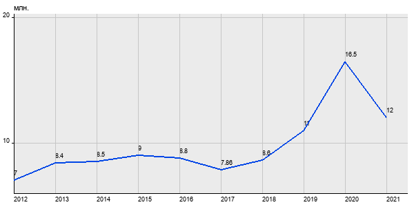 7 млн. руб, а в 2021 году - 12 млн. руб. Таким образом, средняя стоимость однокомнатных квартир в районе "Раменки" за
