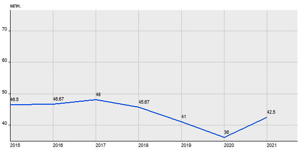 46.5 млн. руб, а в 2021 году - 42.5 млн. руб. Таким образом, средняя стоимость трёхкомнатных квартир в районе "Басманный" за