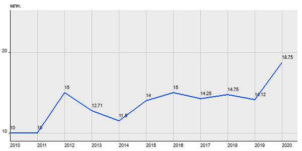 10 млн. руб, а в 2020 году - 18.75 млн. руб. Таким образом, средняя стоимость двухкомнатных квартир в районе "Хамовники" за