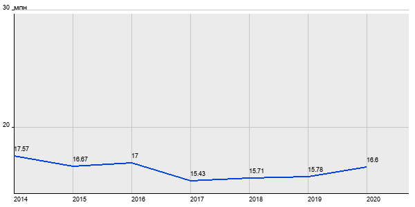 17.57 млн. руб, а в 2020 году - 16.6 млн. руб. Таким образом, средняя стоимость двухкомнатных квартир в районе "Обручевский" за