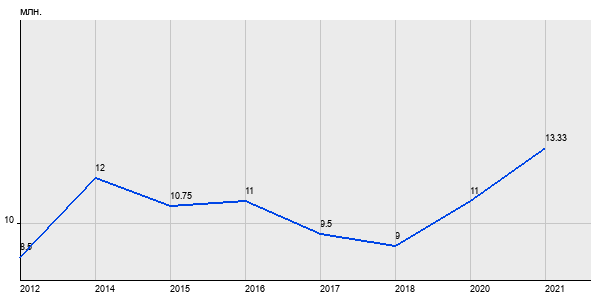 8.5 млн. руб, а в 2021 году - 13.33 млн. руб. Таким образом, средняя стоимость трёхкомнатных квартир в районе "Строгино" за