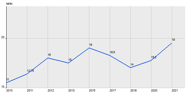 11 млн. руб, а в 2021 году - 19 млн. руб. Таким образом, средняя стоимость трёхкомнатных квартир в районе "Кунцево" за