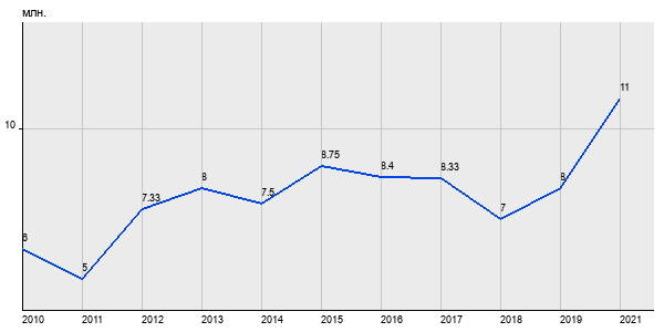 6 млн. руб, а в 2021 году - 11 млн. руб. Таким образом, средняя стоимость однокомнатных квартир в районе "" за