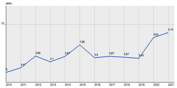 5 млн. руб, а в 2021 году - 9.14 млн. руб. Таким образом, средняя стоимость однокомнатных квартир в районе "Очаково-Матвеевское" за