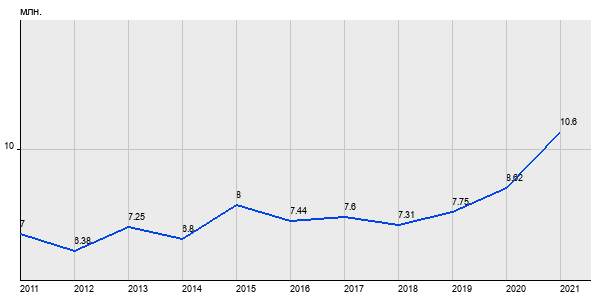 7 млн. руб, а в 2021 году - 10.6 млн. руб. Таким образом, средняя стоимость однокомнатных квартир в районе "" за