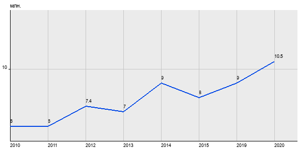 6 млн. руб, а в 2020 году - 10.5 млн. руб. Таким образом, средняя стоимость двухкомнатных квартир в районе "" за