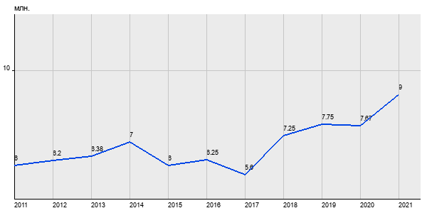 6 млн. руб, а в 2021 году - 9 млн. руб. Таким образом, средняя стоимость двухкомнатных квартир в районе "Чертаново Южное" за