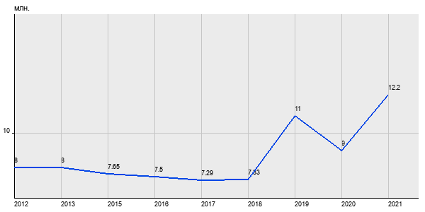 8 млн. руб, а в 2021 году - 12.2 млн. руб. Таким образом, средняя стоимость трёхкомнатных квартир в районе "" за