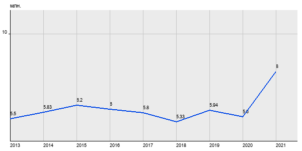 5.5 млн. руб, а в 2021 году - 8 млн. руб. Таким образом, средняя стоимость однокомнатных квартир в районе "Марьино" за
