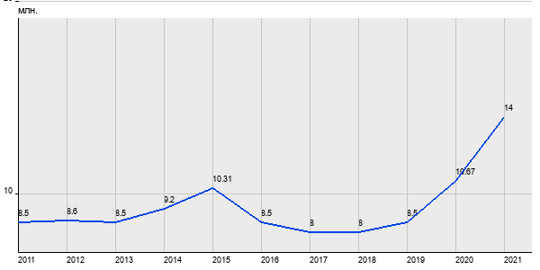 8.5 млн. руб, а в 2021 году - 14 млн. руб. Таким образом, средняя стоимость двухкомнатных квартир в районе "Митино" за