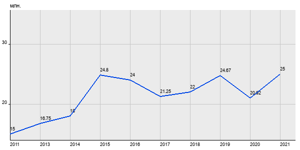 15 млн. руб, а в 2021 году - 25 млн. руб. Таким образом, средняя стоимость двухкомнатных квартир в районе "Тверской" за