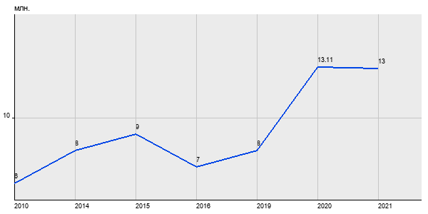 6 млн. руб, а в 2021 году - 13 млн. руб. Таким образом, средняя стоимость двухкомнатных квартир в районе "Люблино" за
