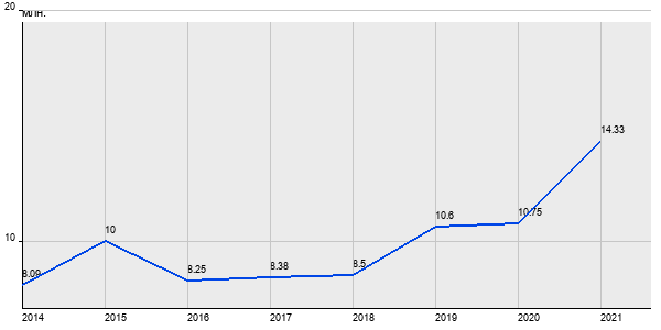 8.09 млн. руб, а в 2021 году - 14.33 млн. руб. Таким образом, средняя стоимость трёхкомнатных квартир в районе "Ясенево" за