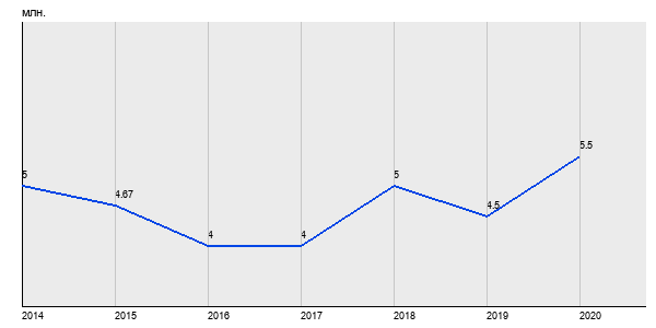 5 млн. руб, а в 2020 году - 5.5 млн. руб. Таким образом, средняя стоимость однокомнатных квартир в районе "" за