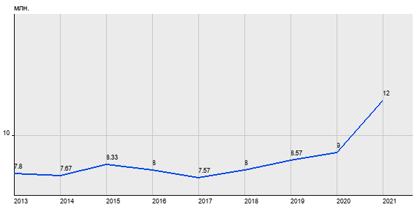 7.8 млн. руб, а в 2021 году - 12 млн. руб. Таким образом, средняя стоимость двухкомнатных квартир в районе "" за
