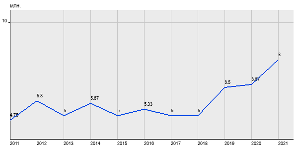 4.75 млн. руб, а в 2021 году - 8 млн. руб. Таким образом, средняя стоимость однокомнатных квартир в районе "" за