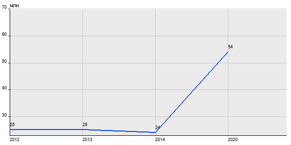 25 млн. руб, а в 2020 году - 54 млн. руб. Таким образом, средняя стоимость двухкомнатных квартир в районе "Хамовники" за