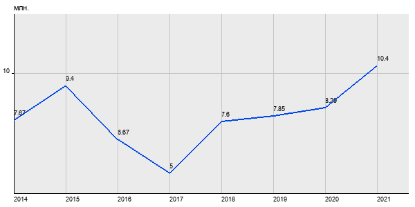 7.67 млн. руб, а в 2021 году - 10.4 млн. руб. Таким образом, средняя стоимость однокомнатных квартир в районе "Северное Бутово" за