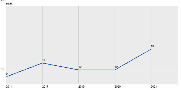 9 млн. руб, а в 2021 году - 13 млн. руб. Таким образом, средняя стоимость трёхкомнатных квартир в районе "Можайский" за