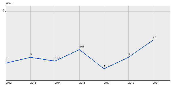 5.5 млн. руб, а в 2021 году - 7.5 млн. руб. Таким образом, средняя стоимость однокомнатных квартир в районе "" за
