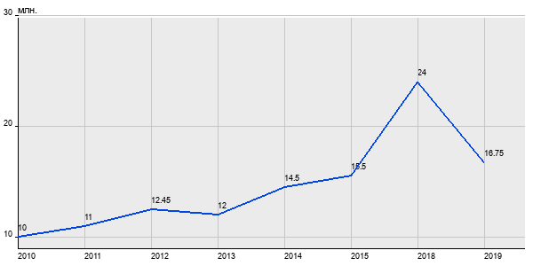 10 млн. руб, а в 2019 году - 16.75 млн. руб. Таким образом, средняя стоимость трёхкомнатных квартир в районе "Зюзино" за