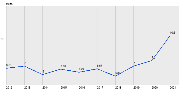 6.75 млн. руб, а в 2021 году - 10.5 млн. руб. Таким образом, средняя стоимость двухкомнатных квартир в районе "Зябликово" за