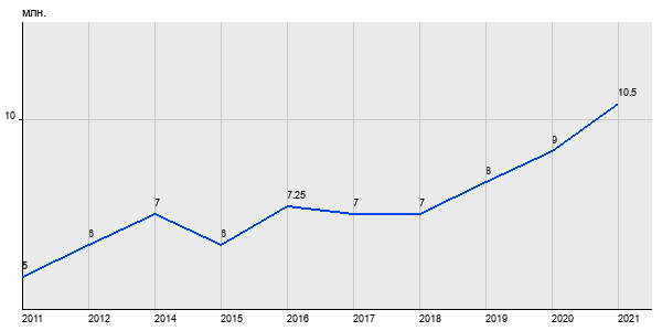 5 млн. руб, а в 2021 году - 10.5 млн. руб. Таким образом, средняя стоимость двухкомнатных квартир в районе "" за
